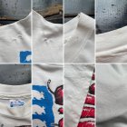 ダメージ:ダメージは前後右肩に所々破れ 穴あります。首リブに所々破れありシミ 汚れありリブは全体的に変色してます。プリント部分にシミ 汚れ その他にもシミや汚れあります。生地は薄くなり多少手が透けます。その他にもダメージ等ありボロいですがご使用には問題ないです。