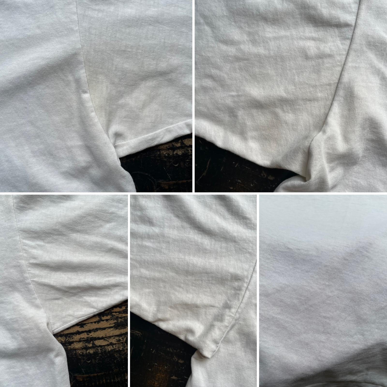 ダメージ:ダメージは両脇 両袖に脇シミ 首リブに変色 生地は薄く手が透けます。その他にもダメージ等ありますがご使用には問題ないです。