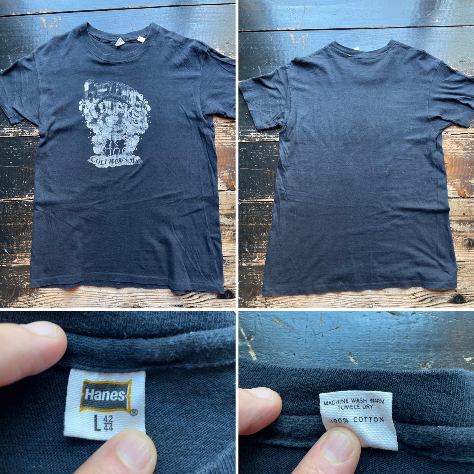 1970年代のビールがプリントされているのでバーとか酒場のだと思われるプリントのTシャツ。ボディはHanes 生産国は表記ないので不明です。素材はコットン プリントは油性 袖と裾はシングルステッチ プリント剥げてヴィンテージらしい良い雰囲気のTシャツだと思います。