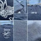 ダメージ:ダメージは前見頃プリントと裾の間に小さい破れ 全体的に毛羽立ち 毛玉感あります。各プリントはヒビ割れあります。全体的に色褪せ 生地は薄くなっていますが手は透けないです。その他にも多少ダメージ等あると思いますがご使用には問題ないです。