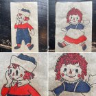 1970年代と思われるラガディ アン&アンディの転写紙 2枚セットになります。コピーライト等は入っていないです。プリントは染み込みだと思います。 古い物になるので実際に貼れる保証はできませんがご了承下さい。絵本のキャラクターの可愛い転写紙だと思います。