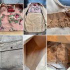 1960年代位のハンティングベスト。後ろ見頃内側上の方だけハンティング柄のプリントネルの生地が付いてます。ジップはCONMATIC 背中にはゲームポケットが付いてます。汚いですが雰囲気良くジップで着丈もあるので合わせやすいハンティングベストだと思います。雰囲気あるので転写プリントのボディにも良いと思います。
