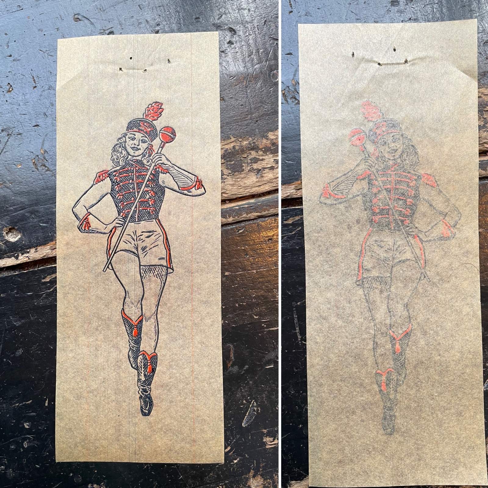 1940年代〜1950年代位のチアリーダーの転写紙。プリントは染み込みだと思います。 古い物になるので実際に貼れる保証はできませんがご了承下さい。使用しなくてもコレクションにも良いと思います。
