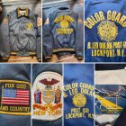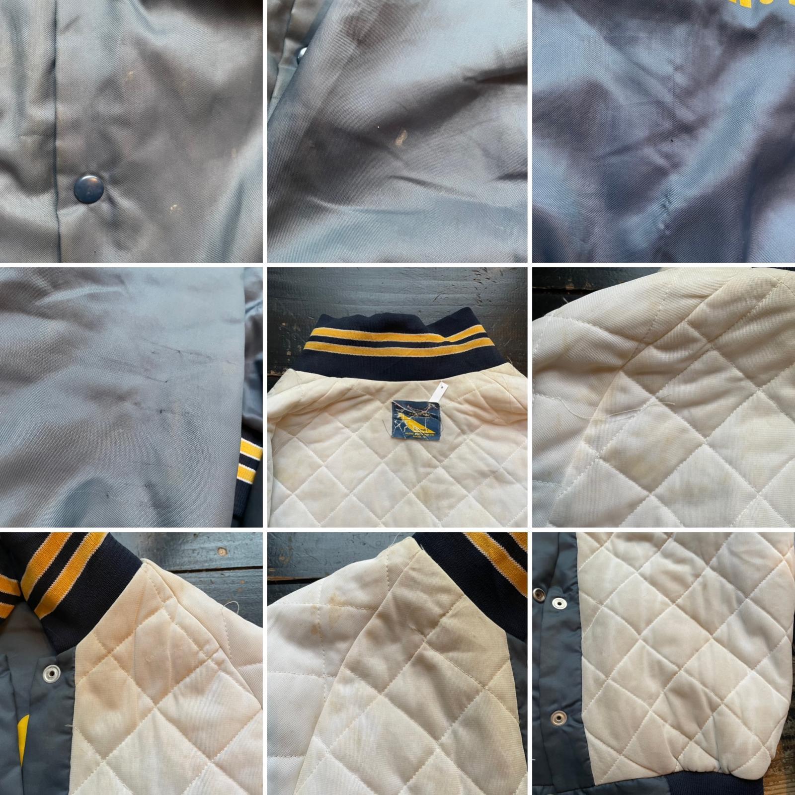 80年代位と思われる退役軍人組織のナイロンジャケット。USA製 素材はナイロン ライニングはポリエステルのキルティングだと思います。プリントは油性だと思います。両袖にパッチが付きます。ボタンはスナップボタン 全体的にボロく変色やシミ 汚れ多々あり汚いですが古着らしい雰囲気あるジャケットだと思います。